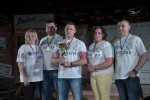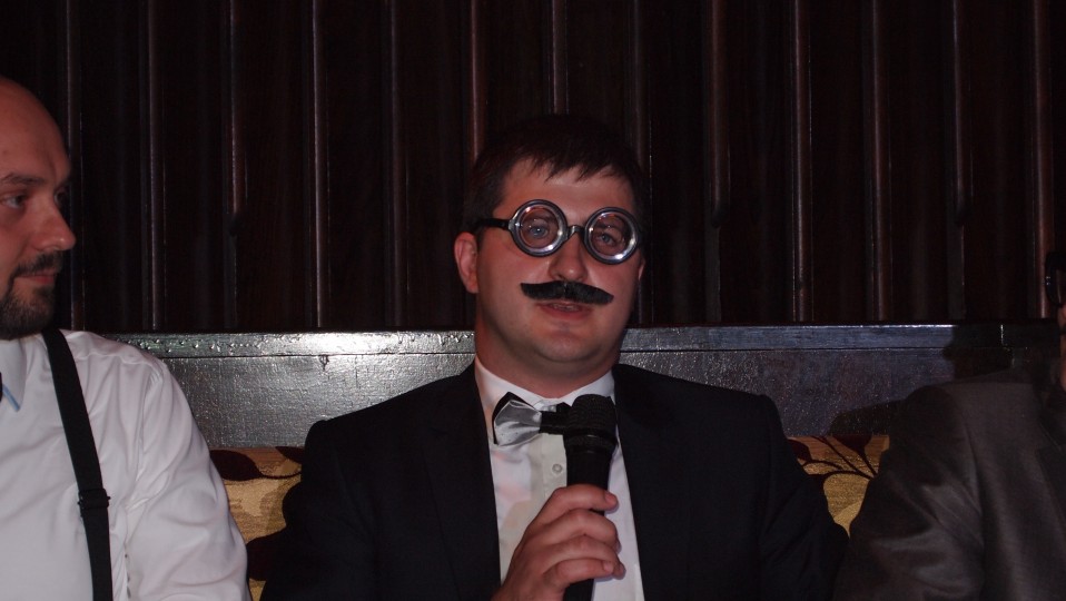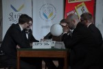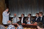 Борьба этих двух команд была настолько горячей, что даже ведущий Сергей Злыдень взял небольшую паузу для, как сказал ведущий, небольшого стриптиза – перед тем как задать решающей вопрос, председатель АСНУ снял пиджак и продолжил вести соревнования в рубашке.