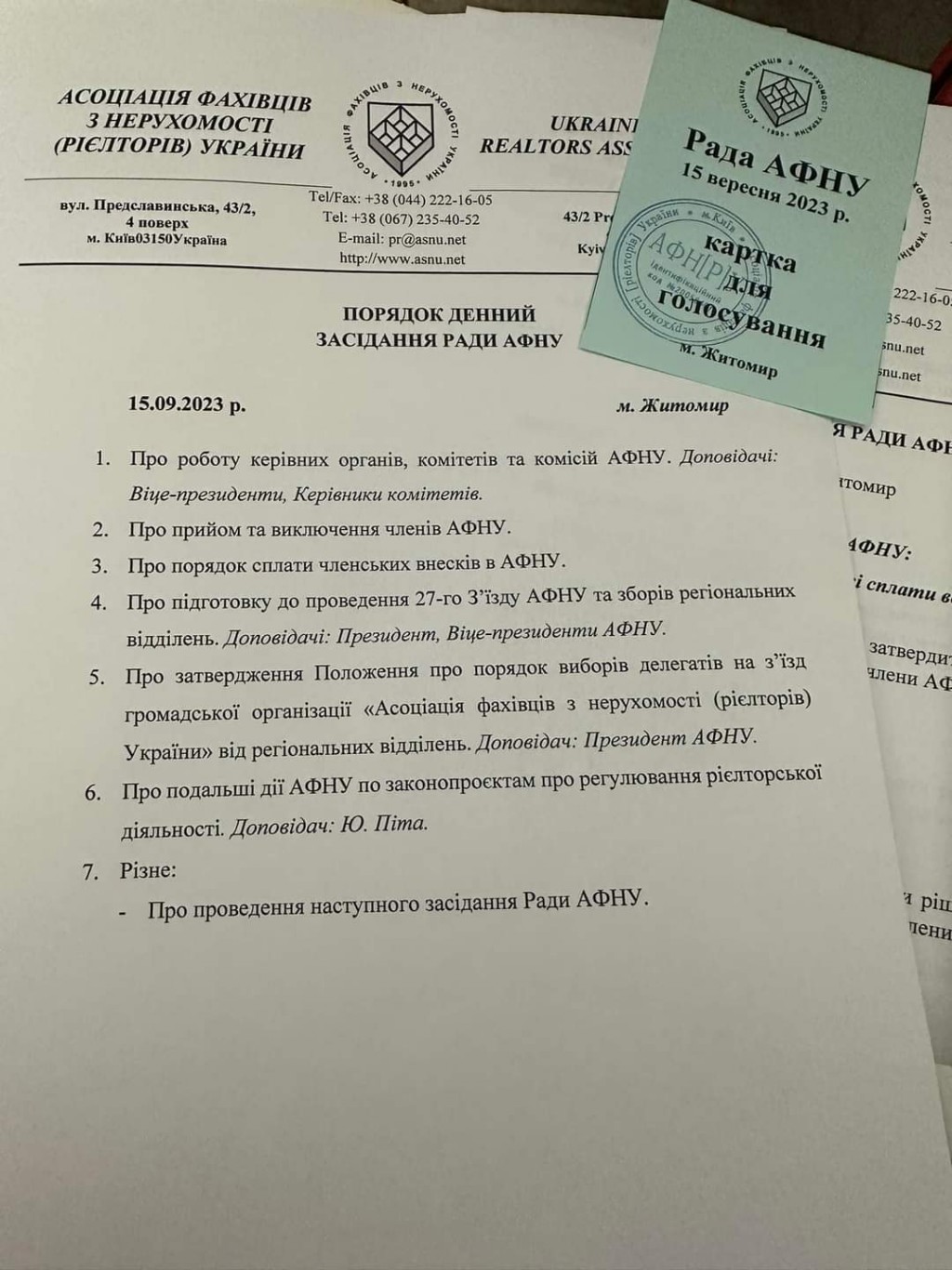 15 вересня в м. Житомир пройшло засідання Ради Асоціації фахівців з нерухомості (рієлторів) України. Ради зібрала представників більшості регіонів України для вирішення нагальних питань діяльності Асоціації.