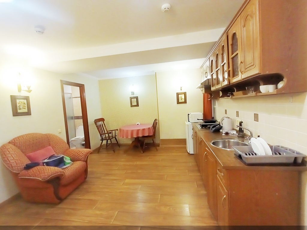 Частина приміщення переобладнана під 1-кімнатну квартиру 48,8м2 з окремим санвузлом та кухнею (можливий окремий продаж).