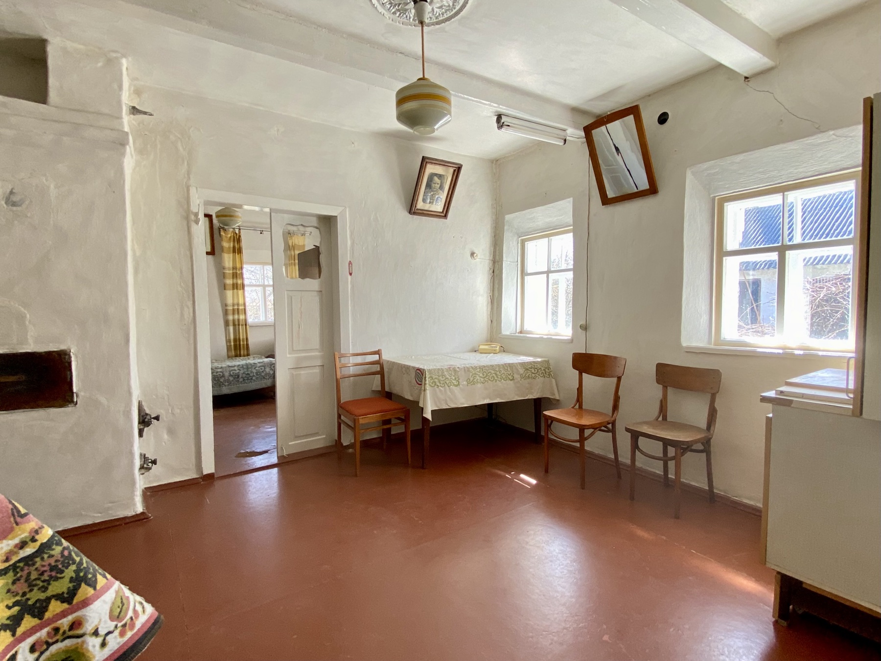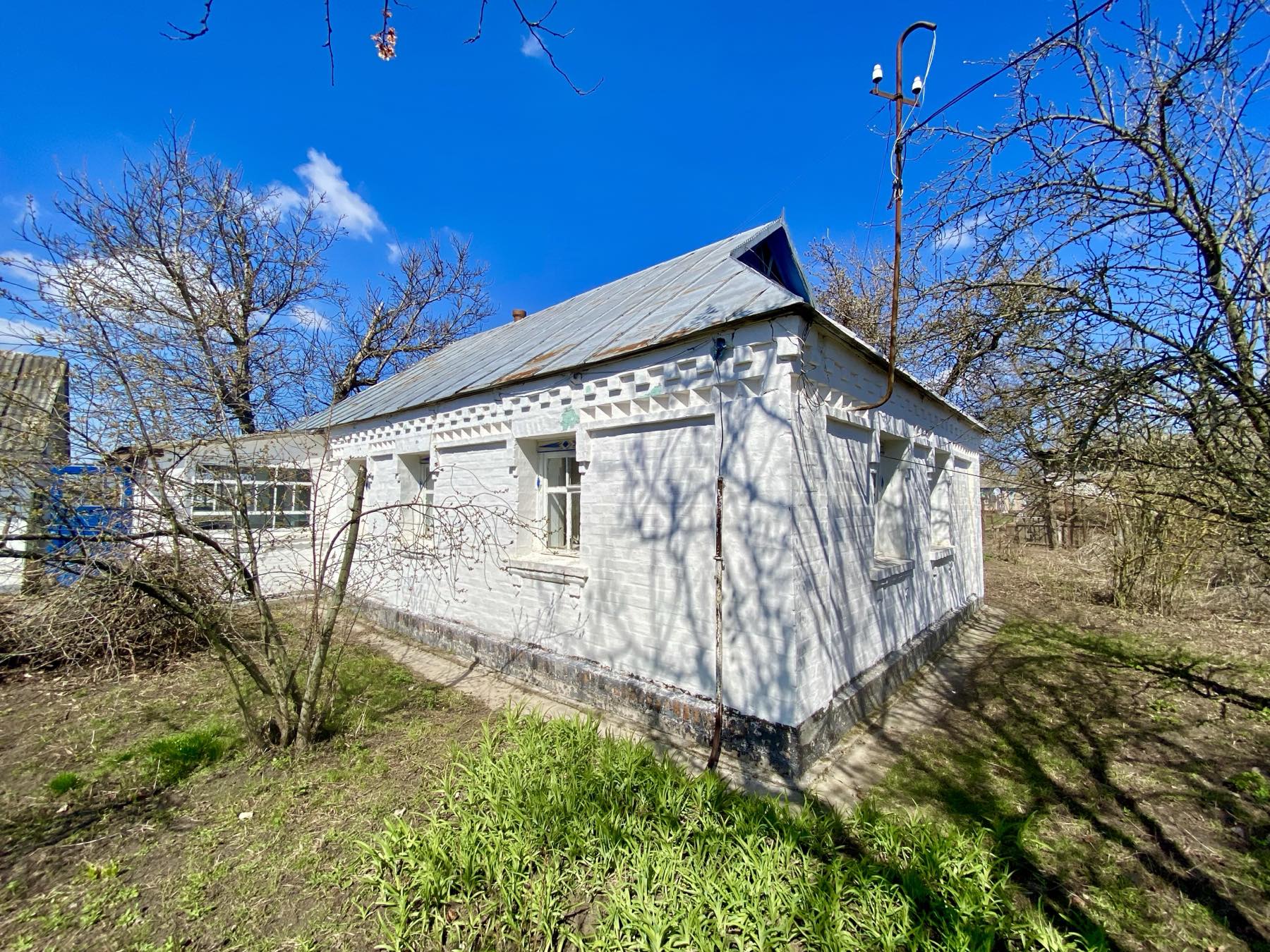 Затишний будинок: Теплий (глина + цегла), пічне опалення, зручне планування (передпокій, веранда, кухня, 2 кімнати). Загальна площа будинку 49 м².