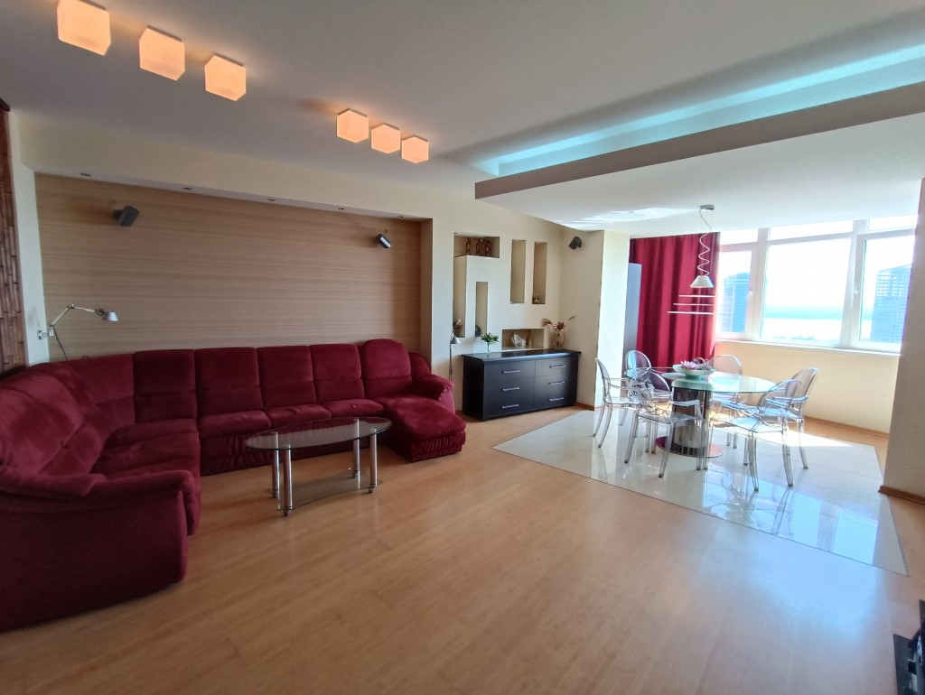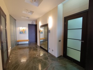 Продам 3к ЖК “Славний” по вул.Симферопольскій 11. Квартира розташована на 9 поверсі 16-ти поверхового будинку. Загальною площею 166,7м.кв., складається з двох окремих великих спалень (30,1 та 24,6м.кв.), вітальні 37,9м.кв, кухні 19,8кв., двох санвузлів (10 та 4,8м.кв) та передпокою 11,3м.кв.. В квартирі виконаний ремонт з використанням якісних матеріалів. Санвузол повністю виконаний з натурального оніксу, встановлена шведська сантехніка, ванна з гідромасажем, духова кабіна з масажем та парилкою. Гостьовий санвузол в кахлі. В житлових кімнатах підлога виконана з бамбукової паркетної дошки, а в передпокої з натурального каменю. Кожна кімната обладнана окремими гардеробами. Доволі вмістка пральна кімната з місцем для зберігання всього необхідного. По всій квартирі встановлені кондиціонери Daikin. Квартира обладнана меблями та технікою. Величезною перевагою цього будинку є власна котельня, яка забезпечує мешканців опаленням та гарячою водою. До того ж температуру в квартирі можно власноруч регулювати, а власний лічильник на тепло дозволяє контролювати витрати на комунальні платежі. Неймовірний вид на річку Дніпро! В максимальний близькості розвинена інфраструктура та все необхідне для активного відпочинку дорослих та дітей!