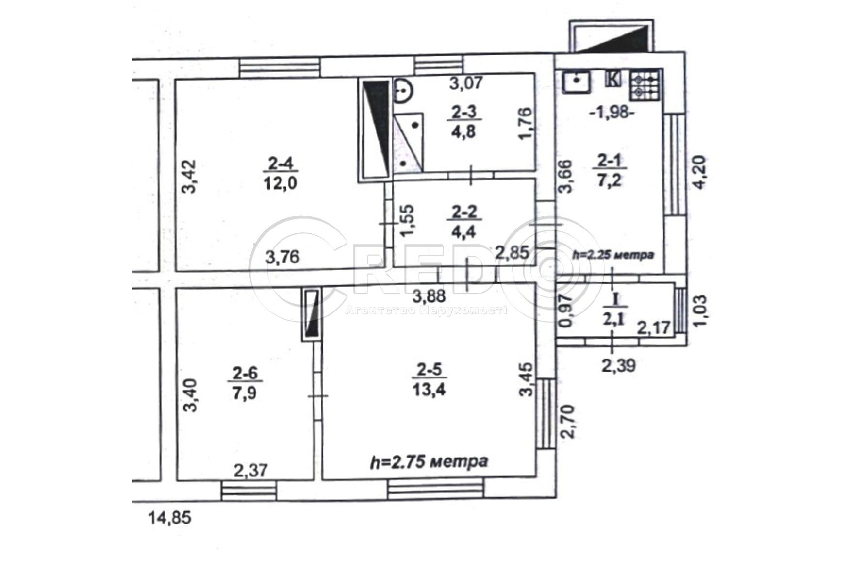 - приміщення під ванну кімнату 4,8 м.кв.