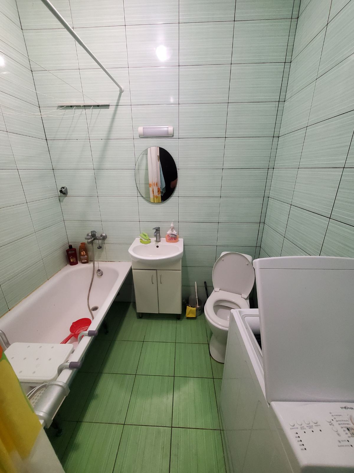 Кухня-студия с зоной спальни и отдельным санузлом. Комплектация мебели и техники: раскладной диван, обеденный стол, шкаф-купе, газовая плита, холодильник, вытяжка, мойка. Санузел с ванной, стиральная машина, умывальник с зеркалом. Установлен двухконтурный газовый котел на отопление, газовый счетчик. Большое панорамное окно.