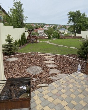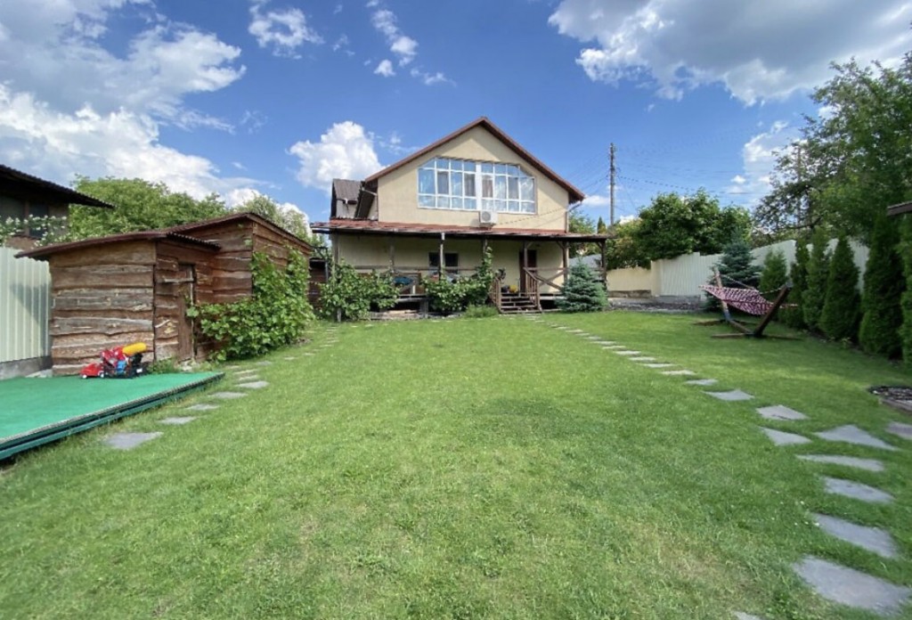 На доглянутій території — ландшафтний дизайн, альтанка з мангалом, зона барбекю та відпочинку, де панує затишок і гармонія.
