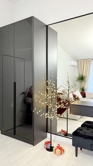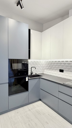Окрема спальня. Кухня-столова, максимально укомплектована меблями та технікою (варочна поверхня, духова шафа, мікрохвильова піч, телевізор). Підігрів підлоги в санвузлі. Окрім котла встановлено бойлер, електрична рушникосушарка.