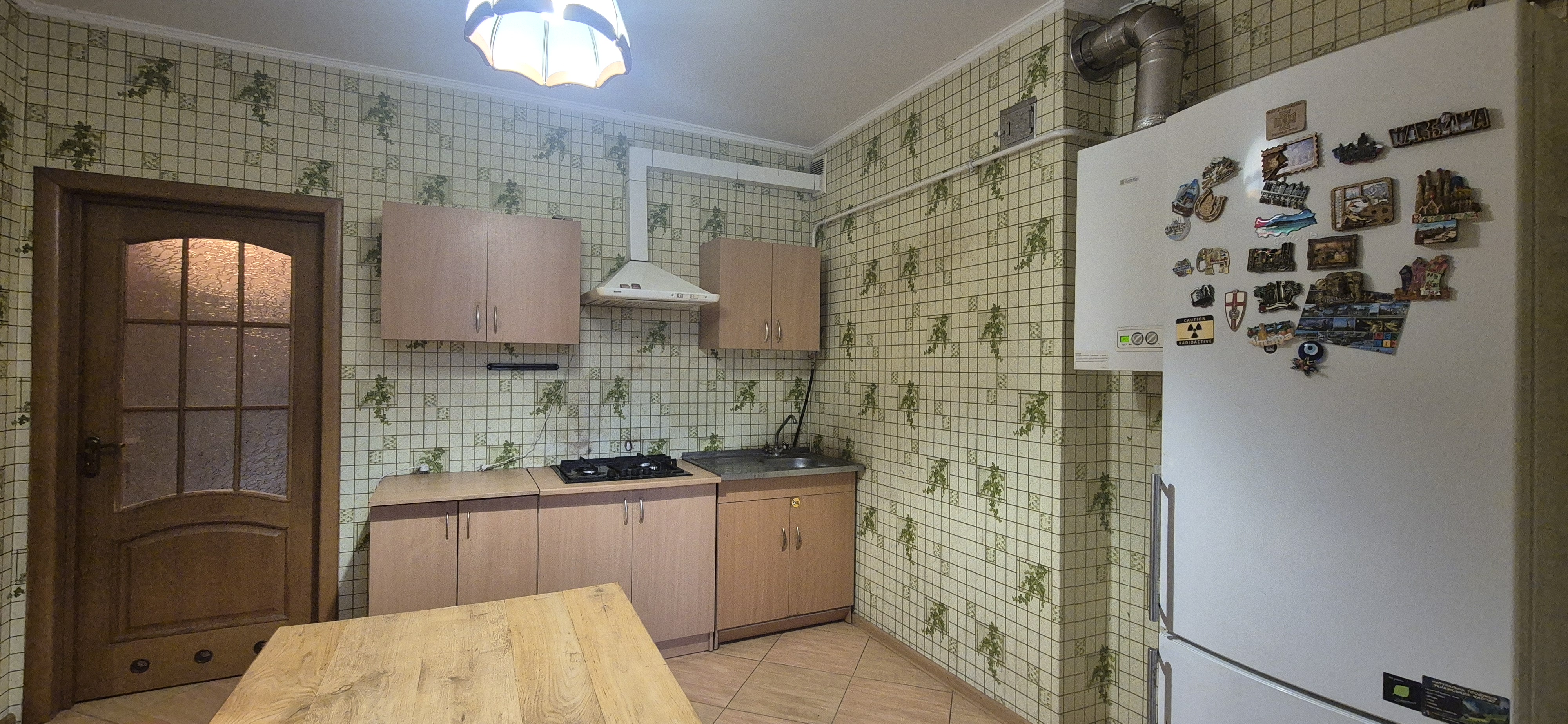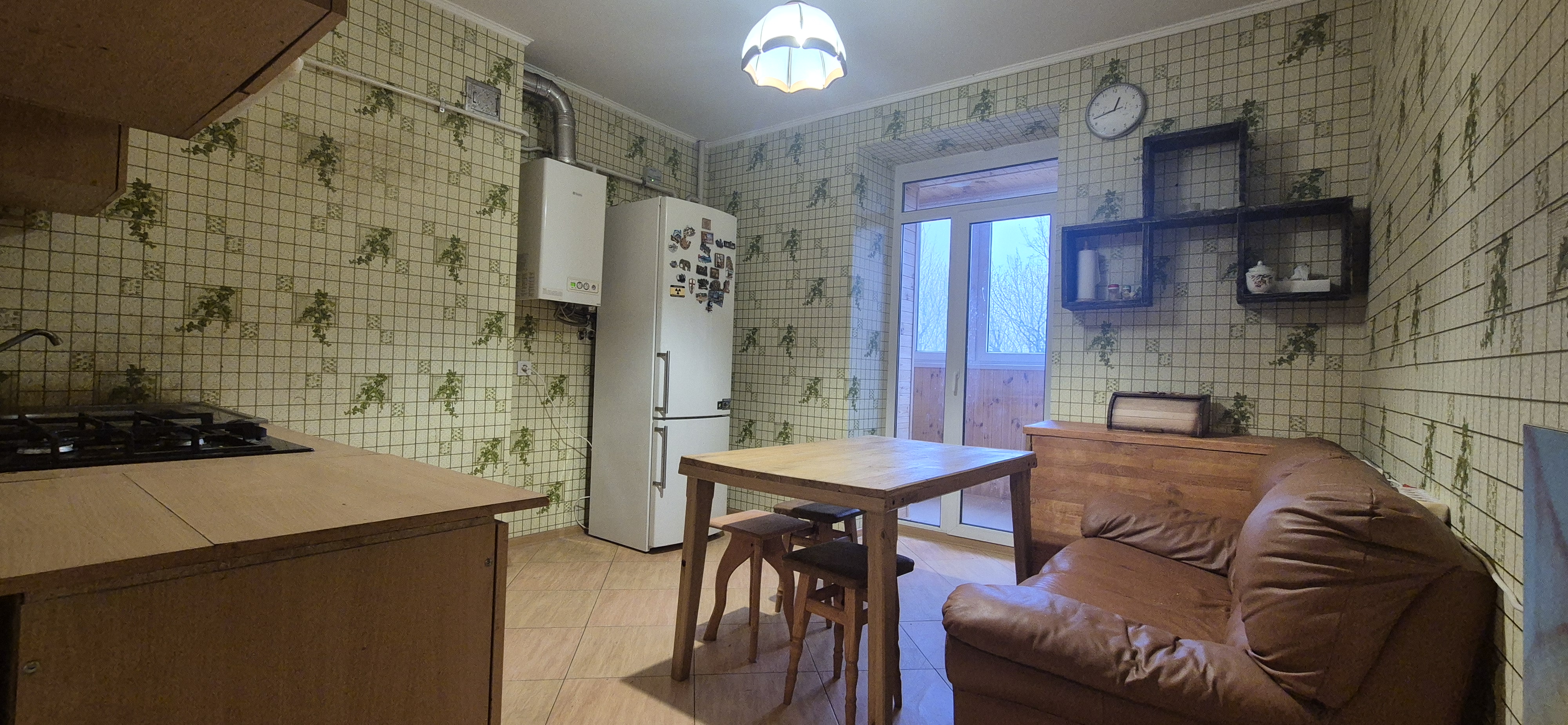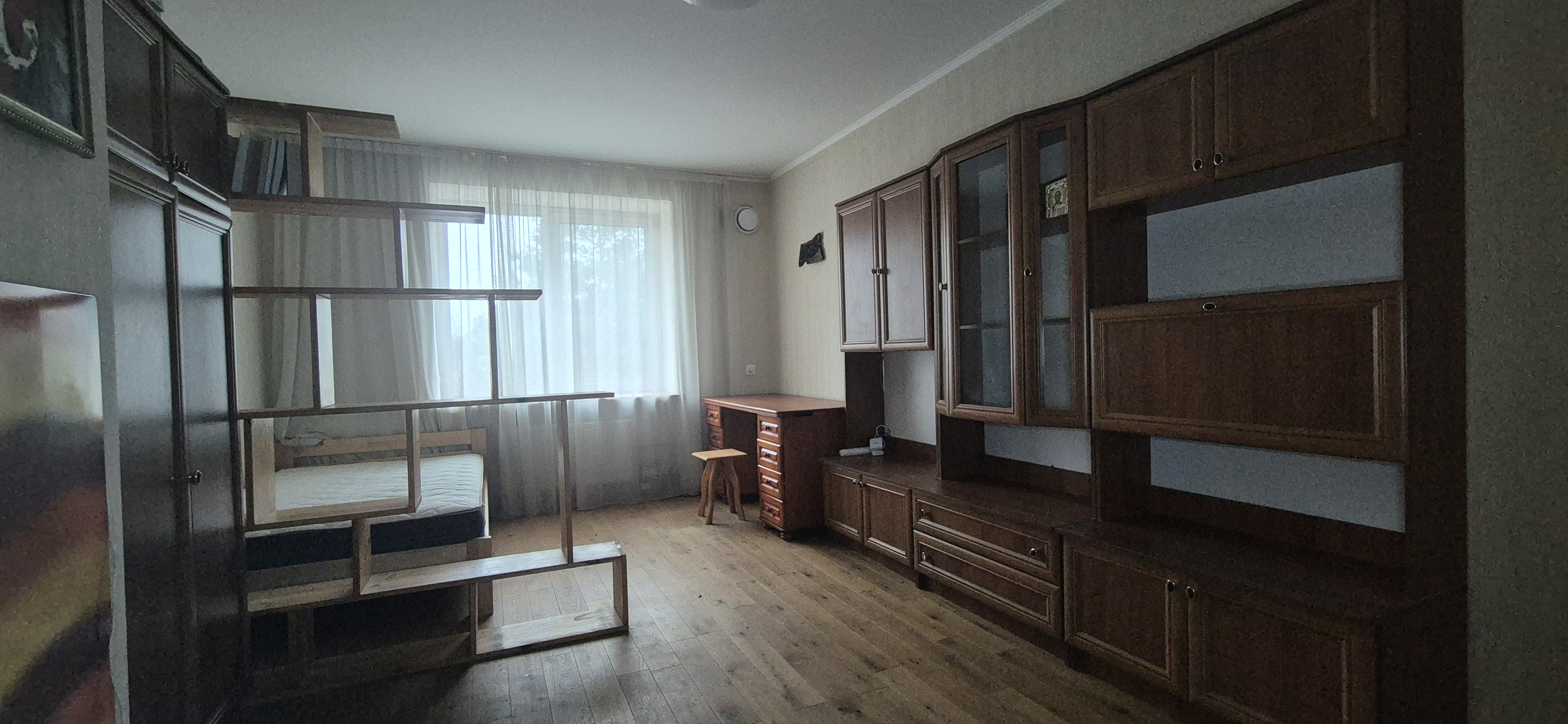 Планування: Кімната (ліжко двоспальне, диван розкладний, шафа, стінка меблева, стіл робочий); Кухня (вбудований гарнітур, газова поверхня, витяжка, мийка, холодильник, газовий котел, обідній стіл, диван) Сансузол суміщений (ванна, пральна машинка, умивальник з тумбою та дзеркалом, унатаз) Лоджия засклена та обшита дерев’яною вагонкою. Вид на ліс. Дуже тихе місце. Коридор (шафа-пенал, полички для зберігання сезонного одягу та взуття, дзеркало). Квартира обладнана газовим котлом та керамічними обігрівачами, домофон, інтернет. Лічильники на газ, воду та електрику. Тамбур на 2 квартири. В під’їзді грузовий ліфт.