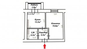 Поверх- 6/9, Площа- 43,3/19,8/12,2