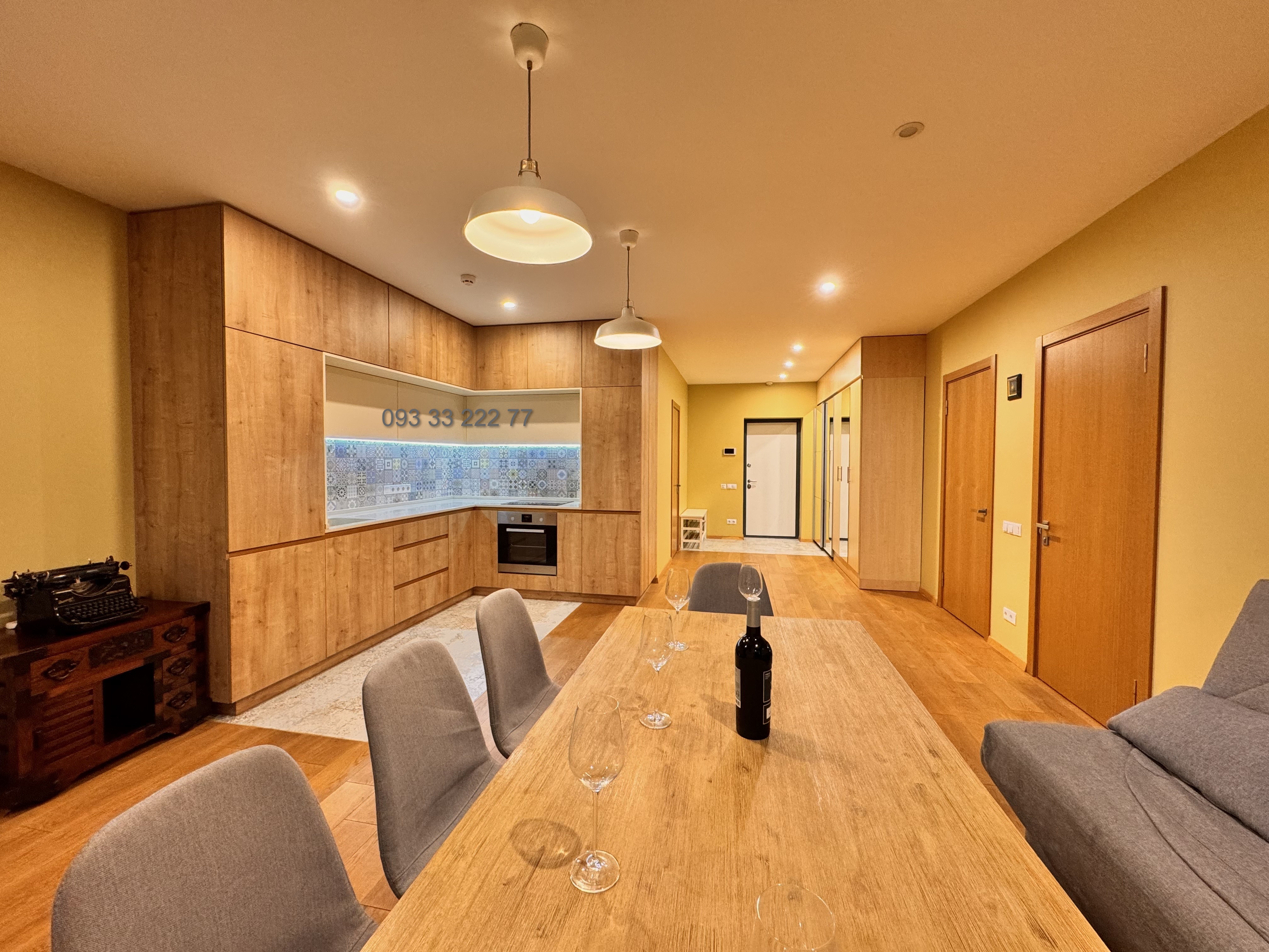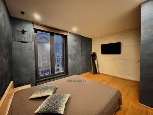 Обладнана необхідними якісними меблями та технікою для комфортного проживання: двоспальне ліжко з ортопедичним матрацом, зручний диван, робочий стіл з кріслом, варильна поверхня, духова шафа, витяжка, вбудований холодильник, плазмовий телевізор, три інверторних кондиціонера, душова кабіна, пральна та сушильна машина, бойлер, пилосмок.