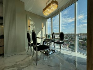 Квартира площею 107/56.7/23.7 м.кв розташована на 10/14 поверсі з неймовірними краєвидами, що відкриваються з панорамних вікон. Ремонт виконаний з дорогих та якісних матеріалів у світлих, спокійних тонах. Є 3 кондиціонери. Тепла підлога по всій квартирі. Квартира на електриці. У квартирі продумано все до дрібниць, починаючи з санвузла, закінчуючи просторими гардеробними. Простора кухня-вітальня дозволить приймати багато гостей. Залишається абсолютно все: меблі, техніка. Заходь і живи. Ця розкіш чекає на тебе. Вартість 257000 у о +12 % оформлення