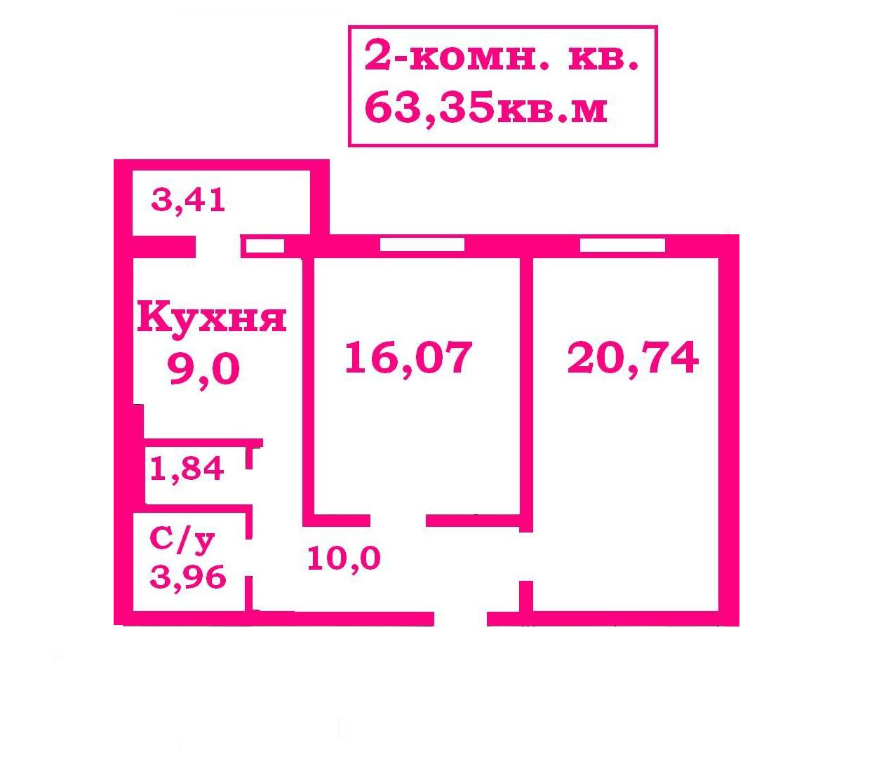 Общая площадь — 63,35м,