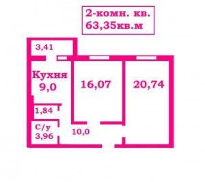 - комнаты — 20,74м и 16,07м,