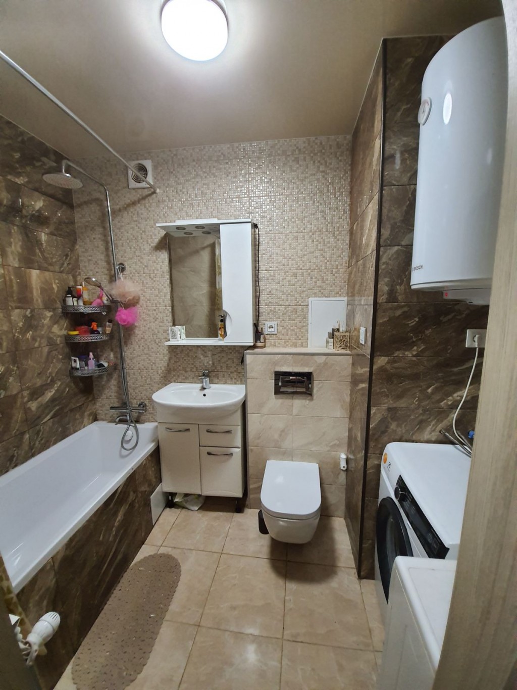 Ванная комната повышенного комфорта. Удобный смеситель с терморегулятором.