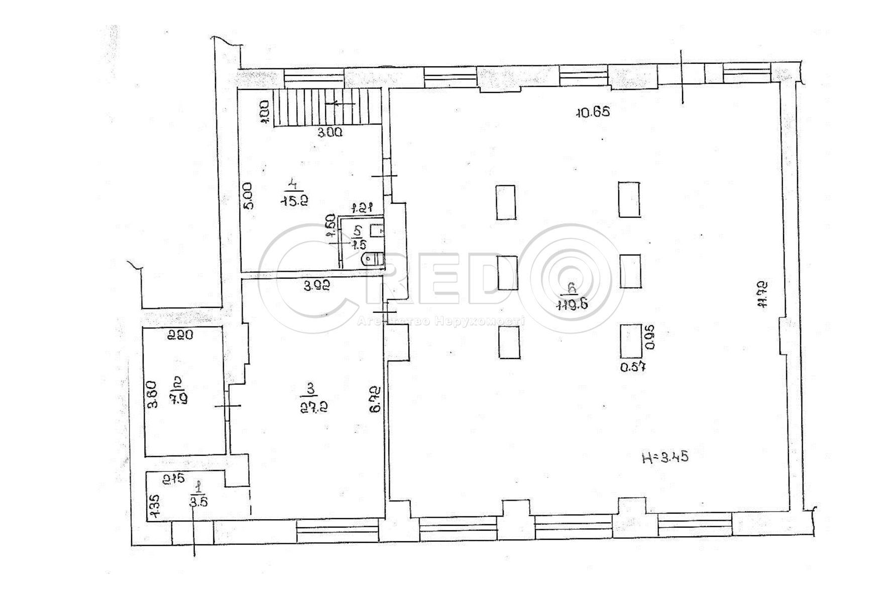 Планування об’єкту: - загальна площа -193 кв.м - перший поверх-175 кв.м - Н=3,45м - другий поверх-18 кв.м - Н=2,14м - окремий центральний та додатковий входи