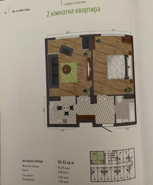Жила площа: 42.29 кв.м
