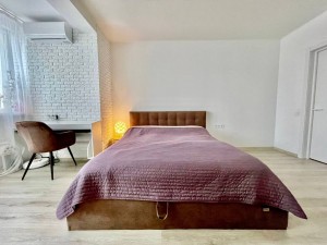 Большая светлая спальня с двуспальной кроватью, вместительный шкаф, кондиционер. Кухня студийно объединена с гостиной, красивая глянцевая белая встроенная кухня, индукционная плита, дорогая техника, холодильник, удобный угловой мягкий диван, обеденная зона, рабочая зона для ноутбука, ванная, стиральная машина- автомат, гардеробная,,, Надежная бронированная входная дверь.