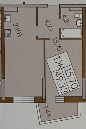 Загальна площа: 49.33 кв.м