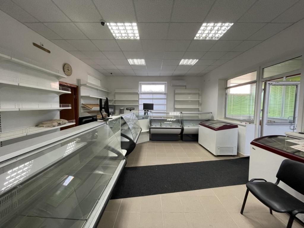 Зал для покупок посетителей оборудован (витрины, холодильники, морозилки, печь конвекционная, расстоечный шкаф, кассы, весы, компьютеры, кофемашина, микроволновка). Все оборудование НОВОЕ!