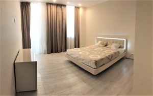 Загальна площа - 110 кв.м: кухня-вітальня, три спальні, два санвузли, вбиральня, балкон.