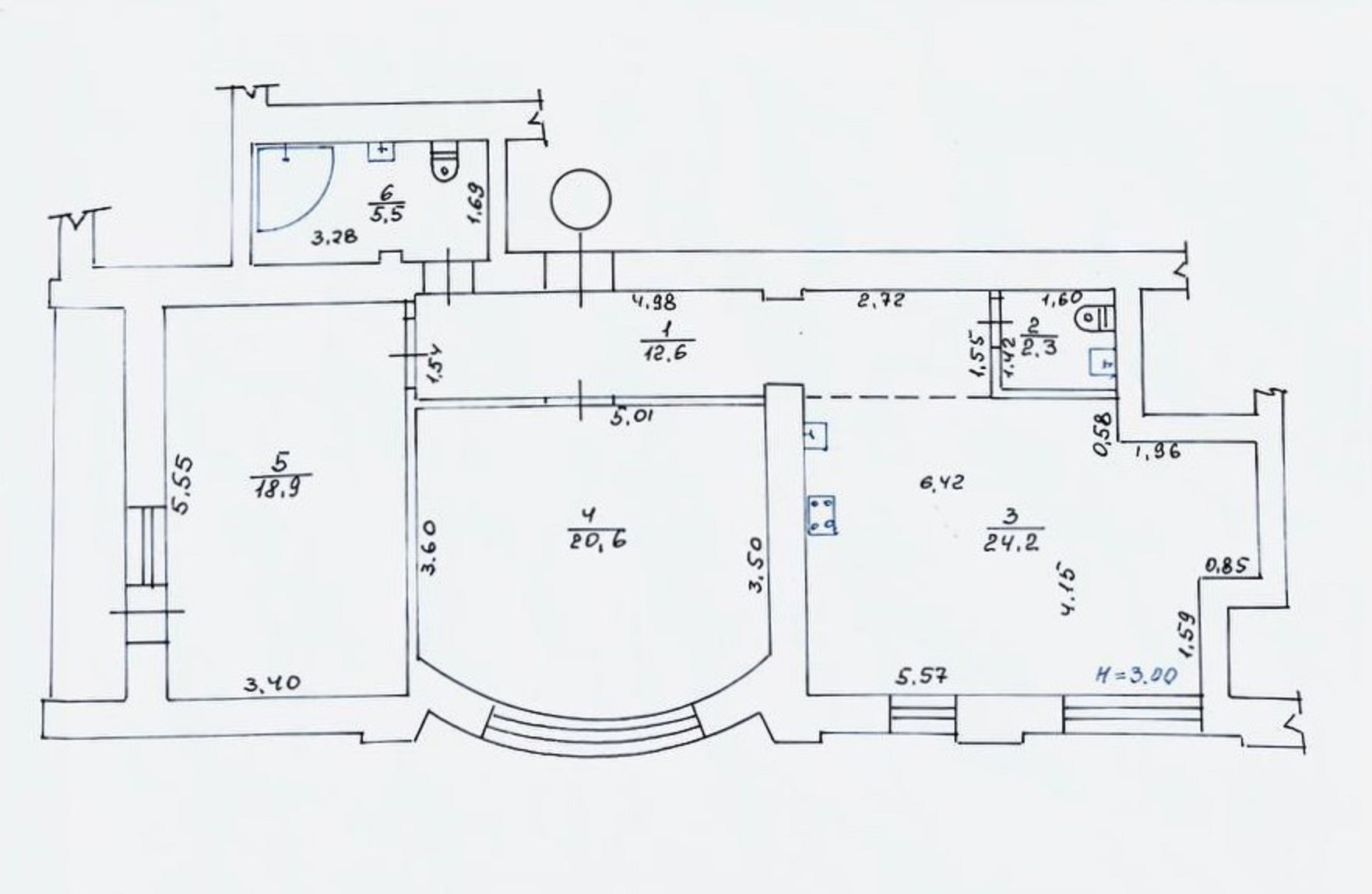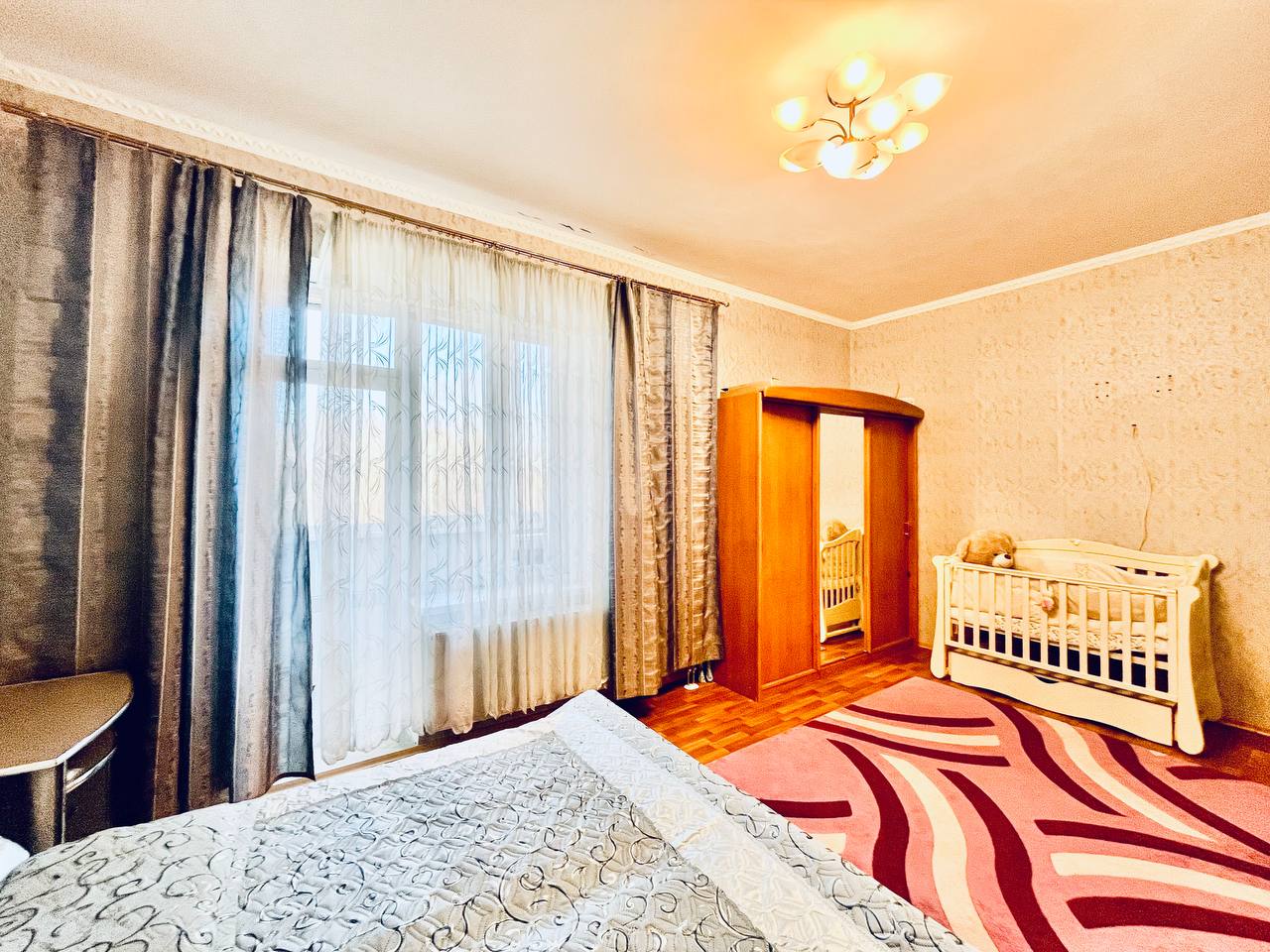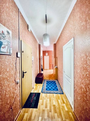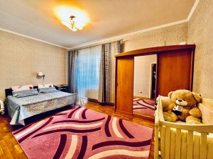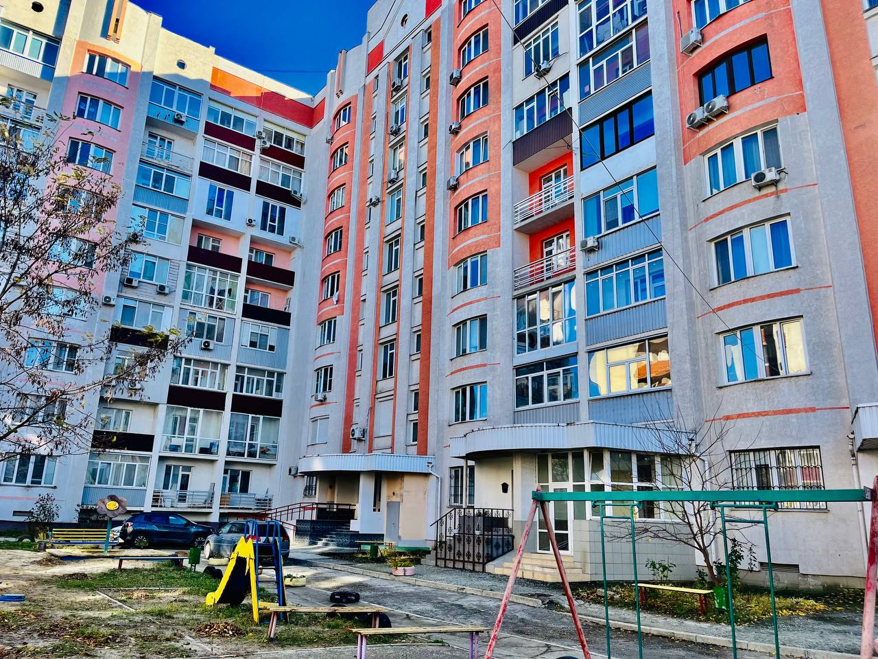 Загальна площа - 87 кв.м: простора кухня-вітальян, дві ізольовані кімнати, впорядкований балкон, два санвузли, передпокій.