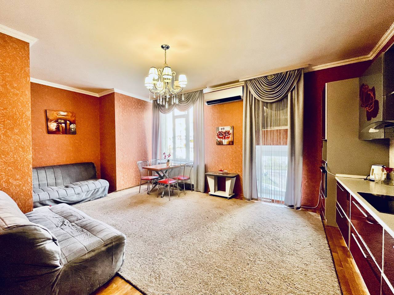 У квартирі зроблено капітальний ремонт. Вбудовані меблі та побутова техніка (холодильник, кондиціонер, варильна поверхня, витяжка, духова шафа, свч), м'які та корпусні меблі.